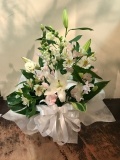 【サイズ】奥行:約30cm×幅:約40cm×高さ:約50cm 【イメージ花材】ユリ、アルストロメリア、その他季節の小花
